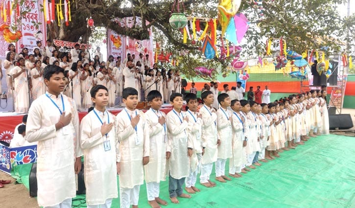 আজ ভোরে নতুন বছরের প্রথম সূর্যকে স্বাগত জানিয়ে জাতীয় সংগীতের মধ্য দিয়ে ও রাগভৈরবীর সুরে শুরু হয় বর্ষবরণ উদযাপন। এরপর পর্যায়ক্রমে পরিবেশিত হয় সমৃদ্ধ সাংস্কৃতিক আয়োজন। কাজী নজরুল ইসলাম ও রবীন্দ্রনাথ ঠাকুরের গান পরিবেশন হয়। এছাড়া লালনসংগীত, লোকগান ও ভাওয়াইয়া পরিবেশনা উৎসবকে আরো প্রাণবন্ত করে তোলে।