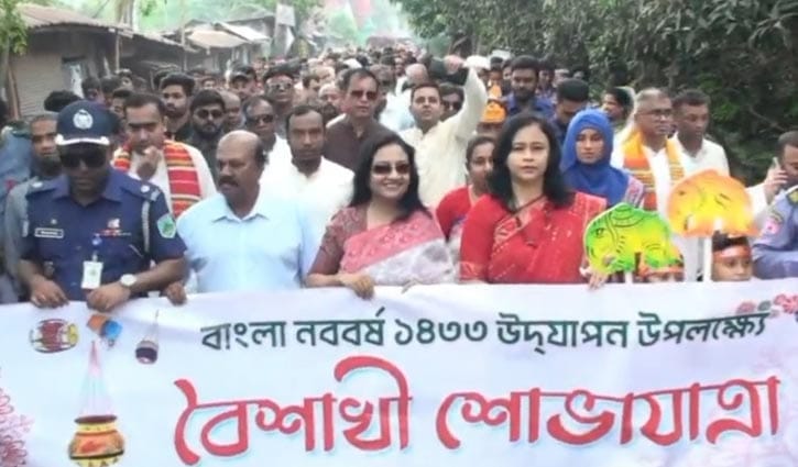 রাজশাহী: ‘নববর্ষের ঐক্যতান, গণতন্ত্রের পুনরুত্থান’ প্রতিপাদ্য নিয়ে রাজশাহী জেলা প্রশাসন বর্ণাঢ্য শোভাযাত্রার আয়োজন করে। মহানগরীর কাজিহাটা পার্ক গেট এলাকা থেকে শোভাযাত্রা বের হয়। এতে ভূমিমন্ত্রী মিজানুর রহমান মিনু প্রধান অতিথি হিসেবে উপস্থিত ছিলেন।