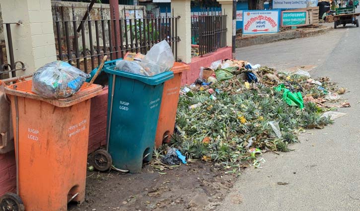 এদিকে নির্দিষ্ট স্থানে ময়লা ফেলতে না পারায় শহরে ময়লা জমে চারদিকে দুর্গন্ধ ছড়িয়ে পড়েছে। সরেজমিনে শহরের বিভিন্ন এলাকা ঘুরে দেখা গেছে, বড় মাঝারি ও ছোট প্রায় সব ডাস্টবিনই উপচে পড়ছে ময়লায়। কোথাও কোথাও ডাস্টবিনের বাইরেও ছড়িয়ে আছে আবর্জনার স্তূপ। খাবারের সন্ধানে কুকুর এসব ময়লা টেনে এনে সড়কে ছড়িয়ে দিচ্ছে, যা পরিবেশ ও জনস্বাস্থ্যের জন্য মারাত্মক ঝুঁকি তৈরি করছে।