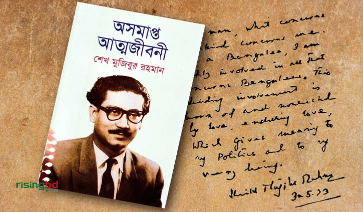 ‘অসমাপ্ত আত্মজীবনী : শেখ মুজিবুর রহমান’ বইটির প্রথম ফ্ল্যাপ থেকে তুলে ধরছি : ‘২০০৪ সালে শেখ মুজিবুর রহমানের লেখা চারটি খাতা আকস্মিকভাবে তাঁর কন্যা শেখ হাসিনার হস্তগত হয়। খাতাগুলি অতি পুরানো, পাতাগুলি জীর্ণপ্রায় এবং লেখা প্রায়শ অস্পষ্ট। মূল্যবান সেই খাতাগুলি পাঠ করে জানা গেল এটি বঙ্গবন্ধুর অসমাপ্ত আত্মজীবনী, যা তিনি ১৯৬৭ সালের মাঝামাঝি সময়ে ঢাকা সেন্ট্রাল জেলে অন্তরীণ অবস্থায় লেখা শুরু করেছিলেন কিন্তু শেষ করতে পারেননি। জেল-জুলুম, নিগ্রহ-নিপীড়ন যাঁকে সদা তাড়া করে ফিরেছে, রাজনৈতিক কর্মকাণ্ডে উৎসর্গীকৃত-প্রাণ, সদাব্যস্ত বঙ্গবন্ধু যে আত্মজীবনী লেখায় হাত দিয়েছিলেন এবং কিছুটা লিখেছেনও, এই বইটি তারই সাক্ষর বহন করছে।