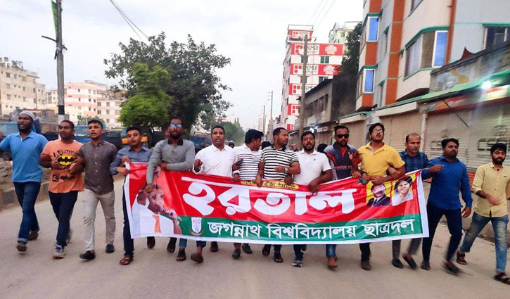বিএনপি ও জামায়াতের ডাকা ৪৮ ঘন্টা হরতালের দ্বিতীয় দিনে হরতাল পালন করেছে জগন্নাথ বিশ্ববিদ্যালয় ছাত্রদল। সোমবার (২০ নভেম্বর) সকাল ৮টার দিকে পুরান ঢাকার তাঁতিবাজার এলাকায় হরতাল সমর্থনে তারা একটি মিছিল বের করে।