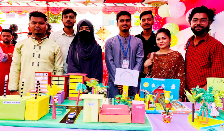 প্রায় অর্ধ শতাধিক পিঠা শোভা পাচ্ছিল প্রদর্শনীতে। পাশের আরেক টেবিলেই ছিল আমাদের বিভাগের তিনটি প্রজেক্ট। সৌর শক্তি, জৈব বিচিত্র্য নিয়ে দুটো প্রজেক্টের পাশে দৃষ্টি কেড়েছে আধুনিক বর্জ্য ব্যবস্থাপনার ক্রিয়া কৌশল। প্রশংসিত হয় অধ্যক্ষ, উপাধ্যক্ষসহ বিচারকমণ্ডলীদের কাছেও।