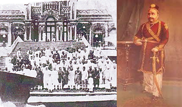 নবাব পরিবারের সদস্যরা (বামে) ও স্যার সলিমুল্লাহ।