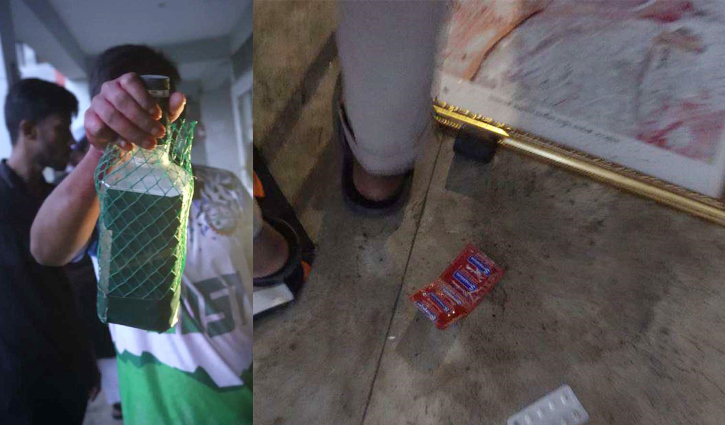 আন্দোলনরত শিক্ষার্থীরা বলেন, শাখা ছাত্রলীগের সাবেক সাধারণ সম্পাদক মো. তানভীর ফয়সালের রুম থেকে হাফ ডজন কনডম ও মাদকদ্রব্য সেবনের উপকরণ পাওয়া গেছে। সাবেক যুগ্ম-সাধারণ সম্পাদক ইকরামুল কবির দ্বীপের রুমে মদের বোতল, কনডম, রড ও লাঠিশোটা পাওয়া যায়।