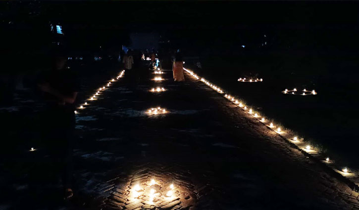 সন্ধ্যা নামতেই এক জাদুকরী দৃশ্যে রূপ নেয় পুরো ক্যাম্পাস। সারি সারি প্রদীপের আলোয় ক্যাম্পাসের লাল ইটের পথ হয়ে ওঠে সোনালি। বাতাসে ভেসে আসছে ধূপের গন্ধ। হাসির ঝলক আর আলোর মায়ায় মুহূর্তগুলো থেকে যায় স্মৃতির ভাঁজে।