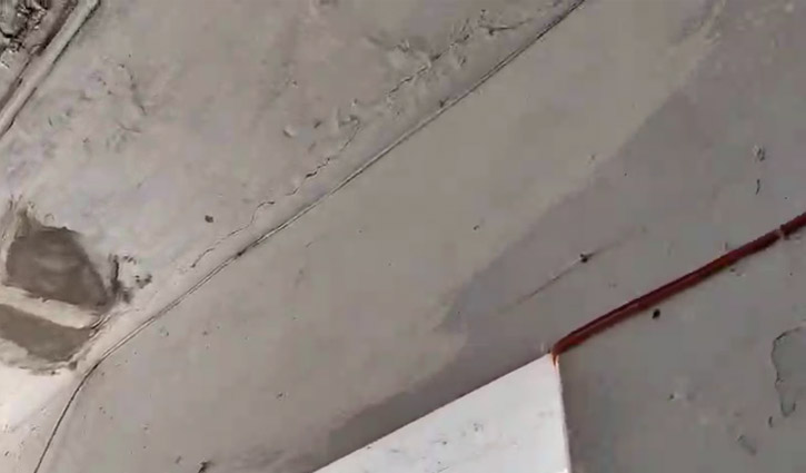 রাজশাহী বিশ্ববিদ্যালয়ের শেরে বাংলা ফজলুল হক হলের ছাদ থেকে খসে পড়া পলেস্তারা ও পিলারে ফাটল।