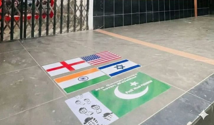 ভারত-পাকিস্তান ছাড়া আরো যেসব দেশের পতাকা সেঁটে দেওয়া হয়েছে। সেগুলো হলো- মার্কিন যুক্তরাষ্ট্র, ইসরায়েল ও যুক্তরাজ্য। শিক্ষার্থীদের এসব পতাকা মাড়িয়ে প্রবেশ ও বাহির হতে দেখা গেছে।