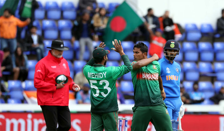 সংক্ষিপ্ত স্কোর : ভারত ৫০ ওভারে ৩৫৯/৭ (রোহিত ১৯, ধাওয়ান ১, কোহলি ৪৭, রাহুল ১০৮, শঙ্কর ২, ধোনি ১১৩, পান্ডিয়া ২১, কার্তিক ৭*, জাদেজা ১১*; রুবেল ২/৬২, সাকিব ২/৫৮, মুস্তাফিজ ১/৪৩, সাইফউদ্দিন ১/২৭, সাব্বির ১/৩০)