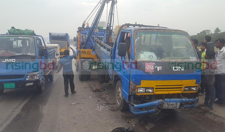 কাঁচপুর সেতুতে পিক-আপ ভ্যানে আগুন
