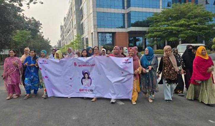 আন্তর্জাতিক নারী দিবসে বিশেষ র্যালি করেন ওয়ালটনের হেডকোয়ার্টার্সে কর্মরত নারীরা