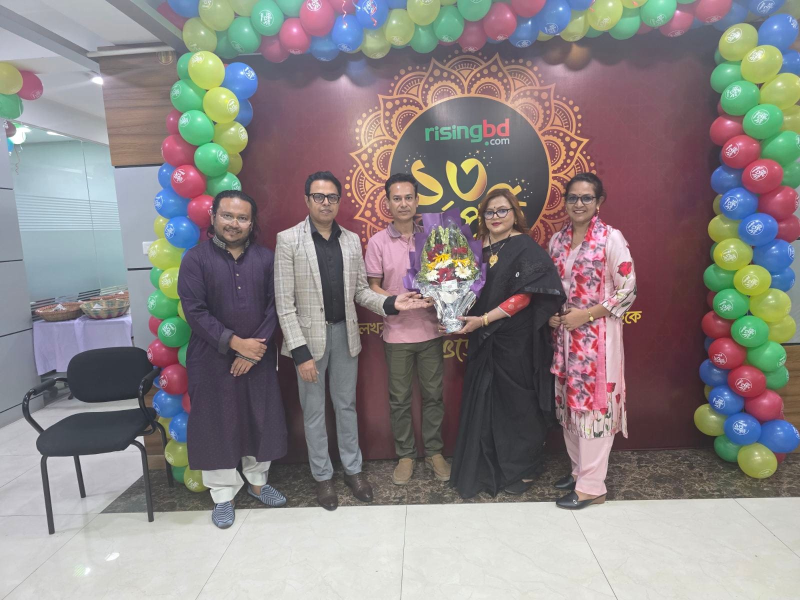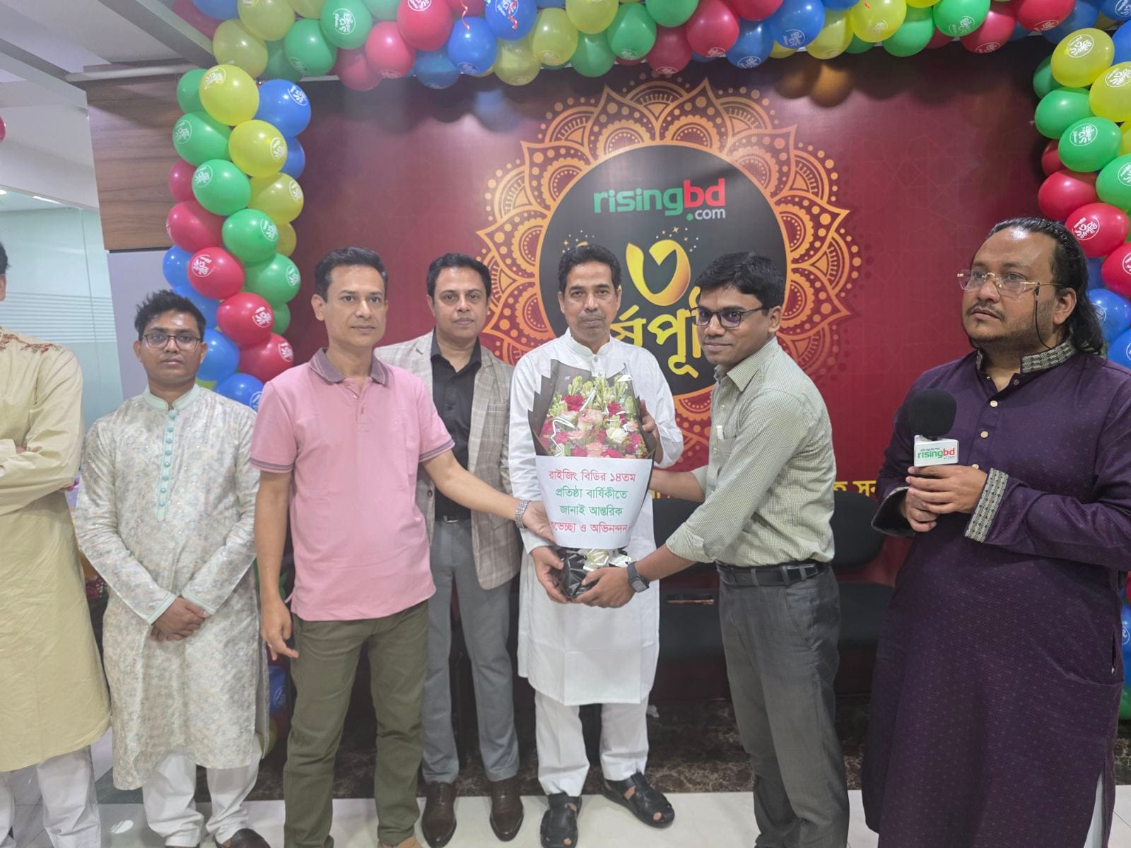 রাইজিংবিডির ১৩তম বর্ষপূর্তি উদযাপন অনুষ্ঠানে শুভেচ্ছা বার্তা গ্রহণের একটি দৃশ্য