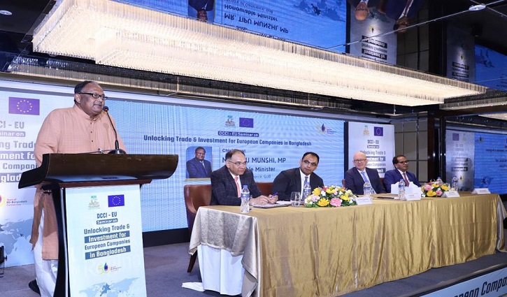 বুধবার (৪ অক্টোবর) গুলশানের রেনেসাঁ ঢাকা হোটেলে এক সেমিনারে তিনি এ কথা বলেন। ঢাকা চেম্বার অব কমার্স অ্যান্ড ইন্ডাস্ট্রি (ডিসিসিআই) এবং বাংলাদেশে ইউরোপীয় ইউনিয়ন ডেলিগেশনের যৌথ উদ্যোগে বাংলাদেশে পরিচালিত ইউরোপিয়ান কোম্পানিগুলোর বাণিজ্য ও বিনিয়োগ সম্প্রসারণ শীর্ষক সেমিনারে বক্তব্য রাখেন মন্ত্রী।
