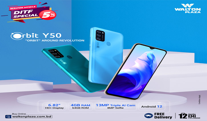 এছাড়া, ওয়ালটনের অরবিট সিরিজের ‘অরবিট ওয়াই৫০’ মডেলের ফোনসহ ওয়ালটনের নির্দিষ্ট মডেলের যেকোনো স্মাার্টফোন কেনায় গ্রাহকদের ৫ শতাংশ পর্যন্ত ছাড় দিচ্ছে ওয়ালটন। ‘অরবিট ওয়াই৫০’ মডেলের ফোনটিতে ব্যবহৃত হয়েছে এইচডি প্লাস রেজুলেশনের বিশাল পর্দা, ট্রিপল ব্যাক ক্যামেরা, শক্তিশালী প্রসেসর, র্যাম-রমসহ নজরকাড়া সব ফিচার।