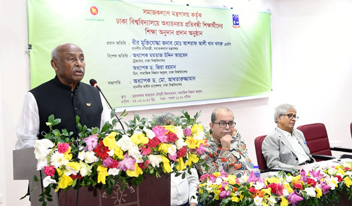 রোববার (২৪ সেপ্টেম্বর) ঢাকা বিশ্ববিদ্যালয়ের সামাজিক বিজ্ঞান অনুষদের মুজাফফর আহমেদ চৌধুরী মিলনায়তনে সমাজকল্যাণ মন্ত্রণালয় কর্তৃক ঢাকা বিশ্ববিদ্যালয়ে অধ্যয়নরত প্রতিবন্ধী শিক্ষার্থীদের শিক্ষা অনুদান প্রদান অনুষ্ঠানে প্রধান অতিথি হিসেবে বক্তব্য প্রদানকালে এসব কথা বলেন তিনি।