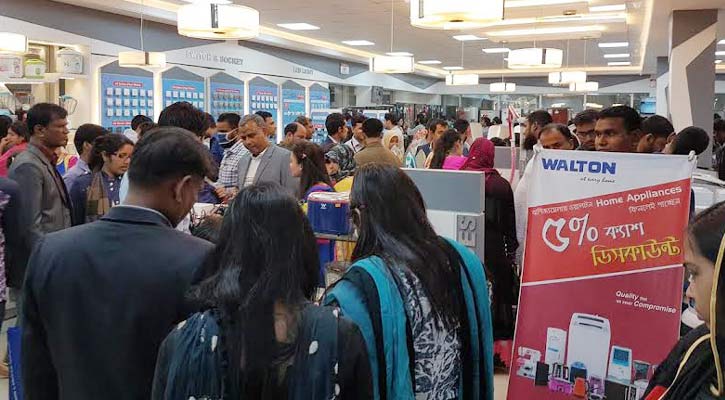 Huge crowds are seen at the stalls and pavilions of different products on the extension of the fair. Among those, Walton Mega Pavilion witnessed a bonanza in the sales of fridge, television and other home and electrical appliances as large number of customers swarmed to the pavilion to pick up the best products.