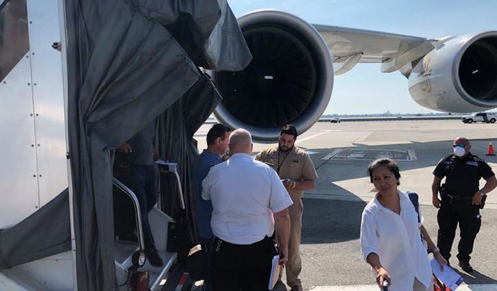 International Desk: Nineteen people have been taken ill after an Emirates airline plane landed in New York, officials say.