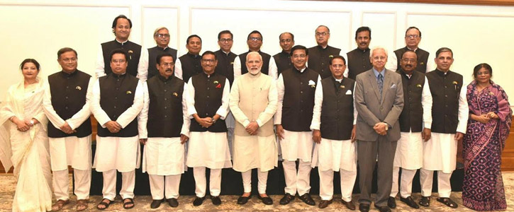 Modi was accompanied by National Security Adviser Ajit Doval, Foreign Secretary Vajay K. Gokhale, Joint Secretary (Bangladesh, Myanmar) Sripriya Ranganathan and Spokesperson of External Affairs Ministry Raveesh Kumar.