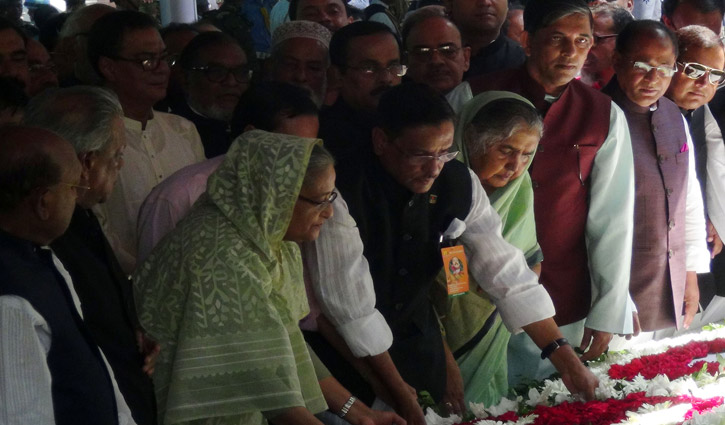 President Abdul Hamid first laid a wreath at the mazar of Bangabandhu followed by the Prime Minister.