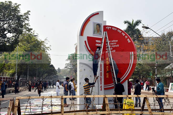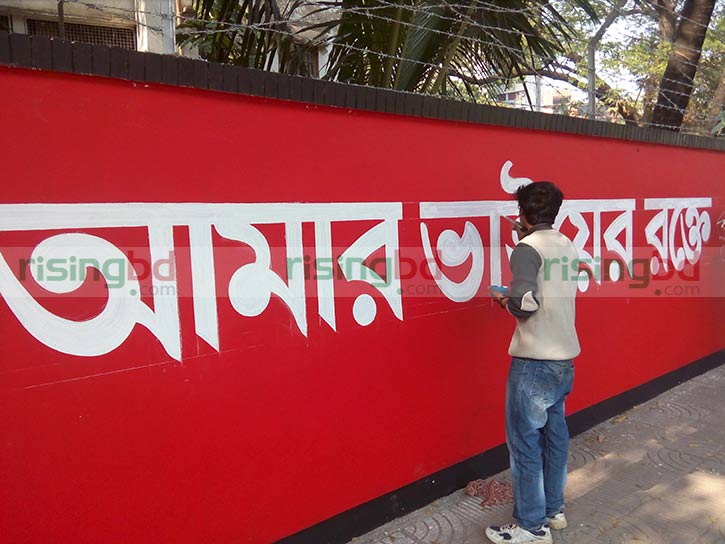 In observance of the day, the Central Shaheed Minar premises has been redecorated with paintings, graffiti, buntings and selected verses on the mother language as the nation awaits the clock to strike one- minute past zero hours (midnight) tonight to start paying homage to the martyrs of the Language Movement.