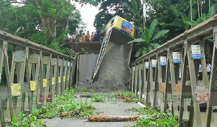 Pirojpur Correspondent: Traffic on 11 roads of Pirojpur has come to a grinding halt after a bailey bridge collapsed in Bhandaria upazila of the district early Saturday.