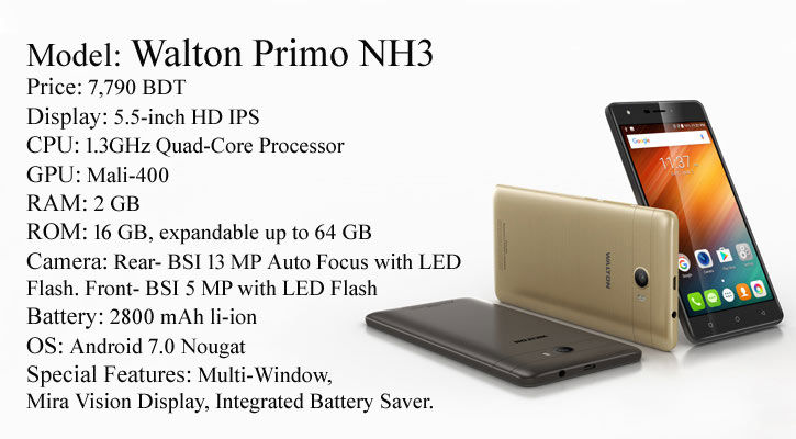 Augustin Sujan: Local brand Walton added two new models of smartphones to its Primo NH series. The new 'Primo NH3' and 'Primo NH3 Lite' feature similar design and most of the specs. Priced at 7,790 and 6,490 BDT, the phones are available with three different colours - coffee, black and golden- at all Walton Plaza and branded outlets across the country.
