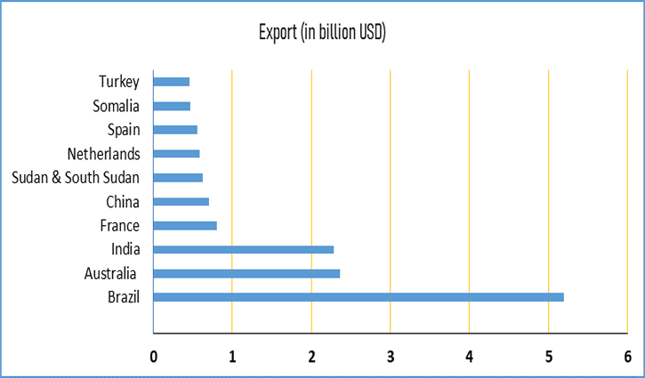 In 2022, the global halal food market size was $2221.30 billion. The scope of this market has been projected to increase to 4,177.30 billion dollars in 2028 by increasing at a compound growth rate of 11.1%. Brazil, Australia, India, France, China, Sudan and South Sudan, Netherlands, Spain, Somalia and Turkey are the leading exporters of Halal meat to 57 OIC countries. Brazil is the largest exporter of halal meat with a trade value of $5.19 billion, followed by Australia and India with $2.36 and $2.28 billion respectively. Other major exporters include France US$ 0.8 billion, China 0.7 billion, Sudan and South Sudan 0.63 billion, Netherlands 0.59 billion, Spain 0.56 billion, Somalia 0.47 billion and Turkey 0.46 billion. Bangladesh exports to OIC countries were US$ 1725.36, 1646.19, 2128.76, 2563.98 and 2232.27 million during FY 2018-19, 2019-20, 2020-21, 2021-22 and 2022-23 respectively. The world's top 10 exporters export USD 14.04 billion worth of halal meat to OIC countries. In addition, size of the Halal beverage industry in the world is at least 415 billion dollars. Major importers of Halal food and beverages are Saudi Arabia, Indonesia, Turkey, Pakistan, Iran, Iraq, Algeria, Nigeria, Bangladesh, Malaysia, United Arab Emirates and Egypt.