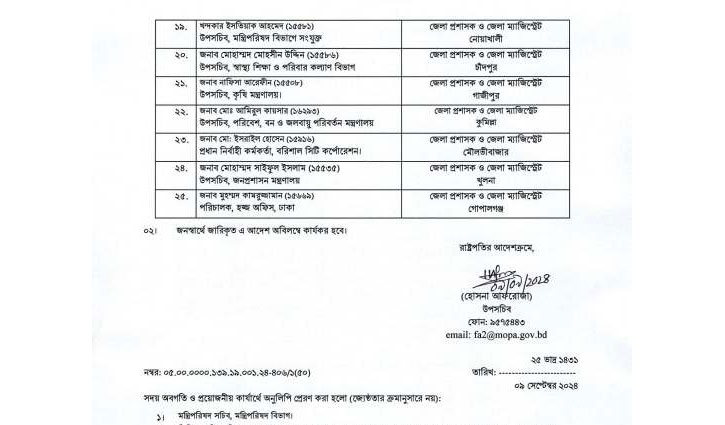According to the notification, the districts are: Dhaka, Sylhet, Habiganj, Mymensingh, Magura, Rangpur, Gaibandha, Naogaon, Natore, Cox’s Bazar, Chattogram, Noakhali, Gazipur, Cumilla, Moulvibazar, Khulna, Gopalganj, Faridpur, Sherpur, Kushtia, Jhenaidah, Pabna, Bogura, Joypurhat and Chandpur.