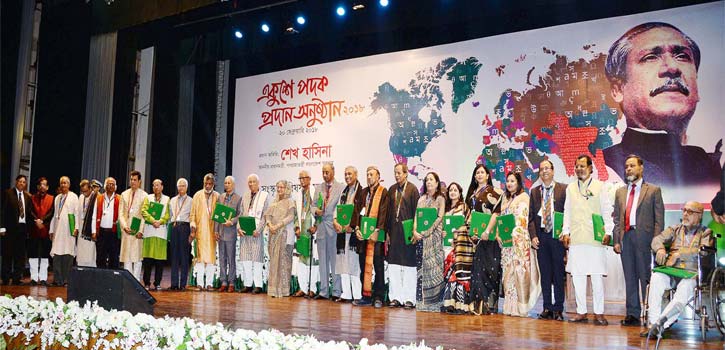Desk Report: Prime Minister Sheikh Hasina on Tuesday handed over Ekushey Padak-2018 to 21 eminent personalities in recognition of their outstanding contributions to their respective fields.