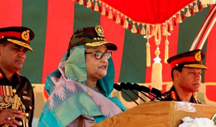PM addressing a ceremony as the chief guest at the parade ground of Bangladesh Military Academy