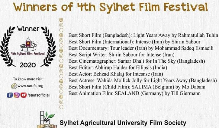 সিলেট ফিল্ম ফেস্টিভ্যালে সেরা সিনেমাটোগ্রাফি বিভাগে পুরস্কার জিতেছে স্বল্পদৈর্ঘ্য চলচ্চিত্র ‘আকাশে’। এটি রচনা ও পরিচালনা করেছেন আহসান স্মরণ। চিত্রগ্রাহক হিসেবে কাজ করেছেন সমর ঢালি।