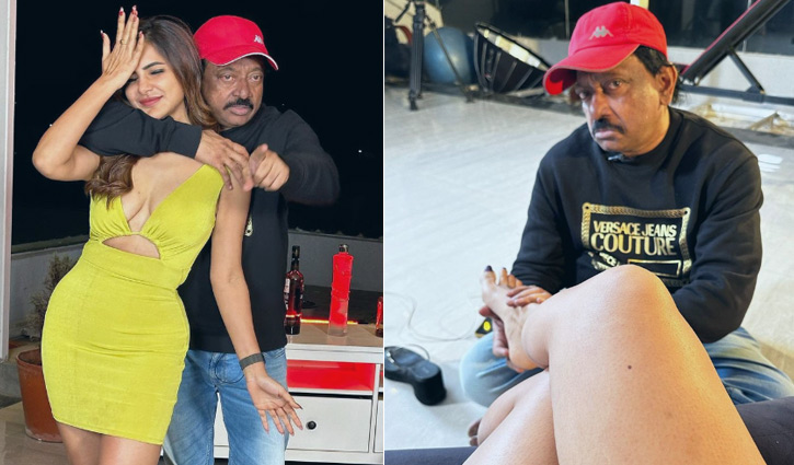 সোফায় বসে আছেন অভিনেত্রী আশু রেড্ডি। তার সামনে ফ্লোরে বসা পরিচালক রাম গোপাল ভার্মা। কিছু একটা বলতে বলতে আশুর বাঁ পায়ের জুতা খুলে ফেলেন তিনি। তারপর ওই পা দু’হাতে ধরে নিয়ে গভীর চুম্বন এঁকে দেন।