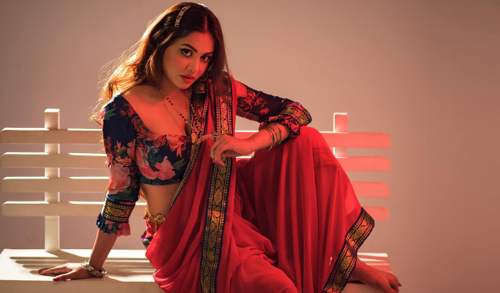 বেঞ্চে পা তুলে বসে আছেন মডেল-অভিনেত্রী মারিয়া মিম। তার পরনে লাল রঙের শাড়ি, সঙ্গে লম্বা হাতার ব্লাউজ। হাতে চুড়ি, আঙুলে আংটি। গলায় পুঁতির মালা। ঠোঁটে লিপস্টিক। কানে বড় দুল। চোখের পাঁপড়িতে কাজল মাখা। চুলগুলো ছেড়ে দেওয়া। নিজের ফেসবুকে পোস্ট করা বেশ কটি ছবিতে এমন আবেদনময়ী রূপে ধরা দিয়েছেন অভিনেতা সিদ্দিকুর রহমানের প্রাক্তন স্ত্রী মিম।