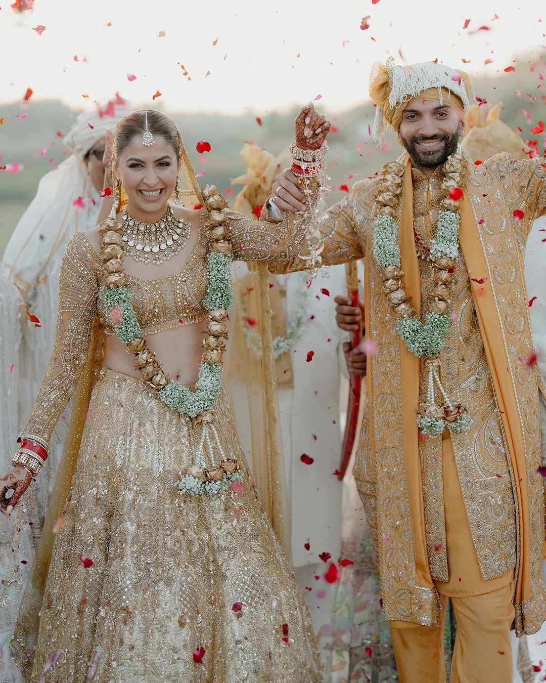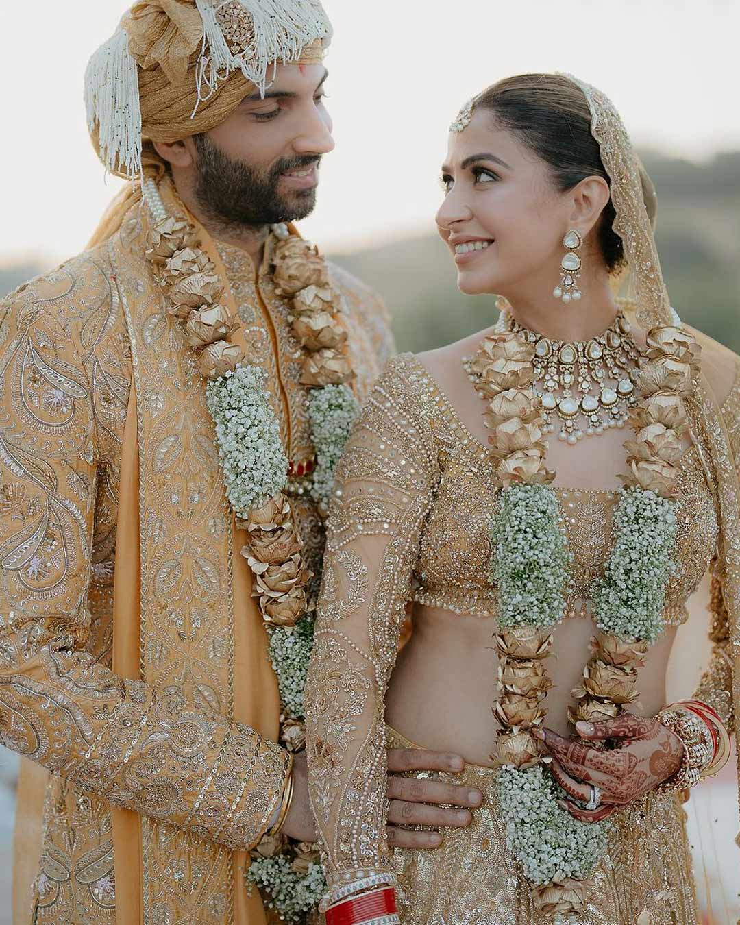 বিয়ের দিন সোনালি রঙের লেহেঙ্গা পরেছিলেন মালবিকা। আর তার সঙ্গে ছিল মানানসই গহনা। অন্যদিকে একই রঙের শেরওয়ানি পরেছিলেন প্রণব। এসব ছবি পোস্ট করে মালবিকা লিখেছেন, ‘আমাদের হৃদয় ভালোবাসা ও কৃতজ্ঞতায় পূর্ণ।’ এরপর থেকে ভক্তদের পাশাপাশি বলিউড তারকাদের শুভেচ্ছা বার্তায় ভাসছেন এই অভিনেত্রী।