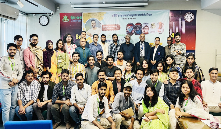 সাংবাদিকতা বিভাগের চেয়ারপার্সন ড. অলিউর রহমানের সভাপতিত্বে ও গ্রিন ইউনিভার্সিটির অ্যালামনাই অ্যাসোসিয়েশনের সভাপতি মোস্তফা মননের সঞ্চালনায় তিনি বলেন, ‘ধরুন, আপনি একজন লেখক হবেন, গল্প লিখতে চান। কোন গল্প লিখলে পাঠকের কাছে বেশি পৌঁছাবে, সেটা নির্ভর করছে আপনি কতটা সৎভাবে গল্পটা লিখছেনে তার ওপরে। ঠিক একইভাবে, যারা নির্মাতা কিংবা অভিনয়শিল্পী হতে চান, তাদের ক্ষেত্রেও এই সততা ও নিজস্বতাকেই বেশি প্রাধান্য দিতে হবে।’