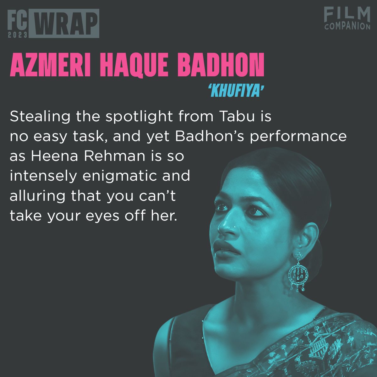 বুধবার (২০ ডিসেম্বর) গণমাধ্যমটি এ তালিকা প্রকাশ করে। বাঁধনের ভূয়সী প্রশংসা করে সংবাদমাধ্যমটি জানিয়েছে, ‘খুফিয়া’ সিনেমায় টাবু ওপর থেকে দৃষ্টি ফেরানো কঠিন। সিনেমাটিতে হিনা রহমান চরিত্রে অভিনয় করেছেন আজমেরী হক বাঁধন। এ চরিত্রে বাঁধনের আকর্ষণীয় ও রহস্যময় পারফরম্যান্স থেকেও চোখ সরানো দায়।
