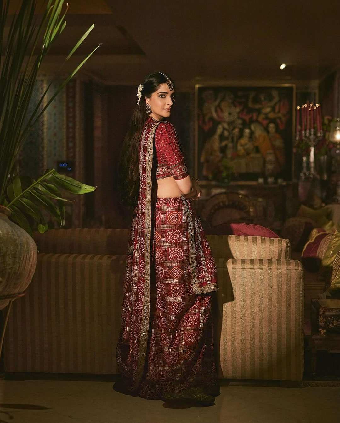 পরনে লাল রঙের শাড়ি-ব্লাউজ। চোখে কাজল, কপালে টিকলি। চুলগুলো আলগা করে ছেড়ে দেওয়া, তাতে গোজা ফুল। গতকাল ইনস্টাগ্রামে বেশ কটি ছবি পোস্ট করেছেন বলিউড অভিনেত্রী সোনম কাপুর। তাতে এমন লুকে দেখা যায় তাকে।