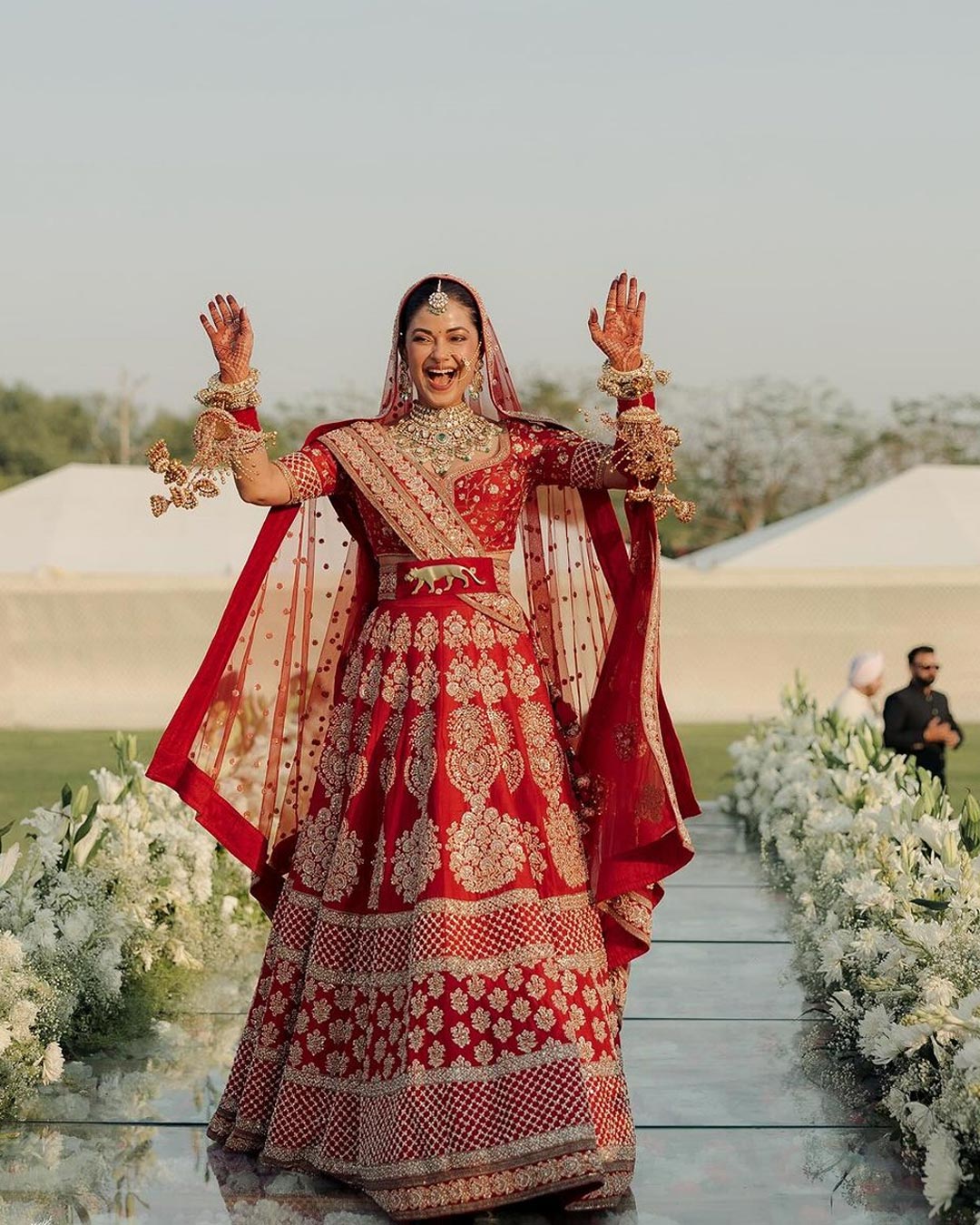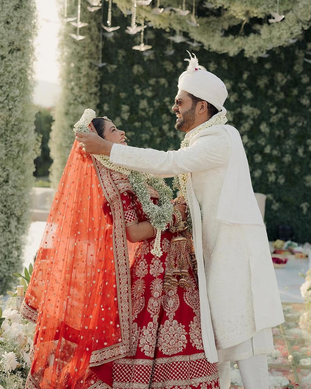 প্রিয়াঙ্কা চোপড়ার চাচাতো বোন মীরা চোপড়া তার বিয়ের ছবি ইনস্টাগ্রামে শেয়ার করেছেন। তাতে দেখা যায়, টকটকে লাল রঙের ভারী কাজের লেহেঙ্গা পরেছেন মীরা। আর আইভরি রঙের শেরওয়ানিতে সেজেছেন বর রক্ষিত কেজরিওয়াল। তাদের মাথার ওপরে পড়ছে ফুলের পাপড়ি।