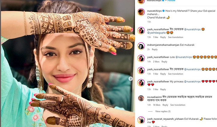 ঈদের আমেজে আছেন টালিউড অভিনেত্রী নুসরাত জাহান। হাতে মেহেদি রাঙিয়ে সেই ছবি অনুরাগীদের সঙ্গে শেয়ার করে নিয়েছেন ইনস্টাগ্রামে। পরিবারের সদস্যদের সঙ্গে কীভাবে আনন্দ ভাগাভাগি করলেন তাও জানিয়েছেন এই অভিনেত্রী।