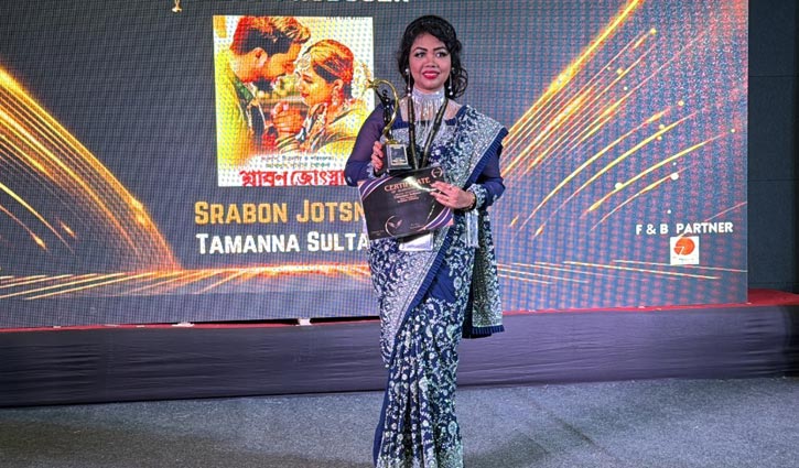পুরস্কার গ্রহণ করছেন প্রযোজক তামান্না সুলতানা