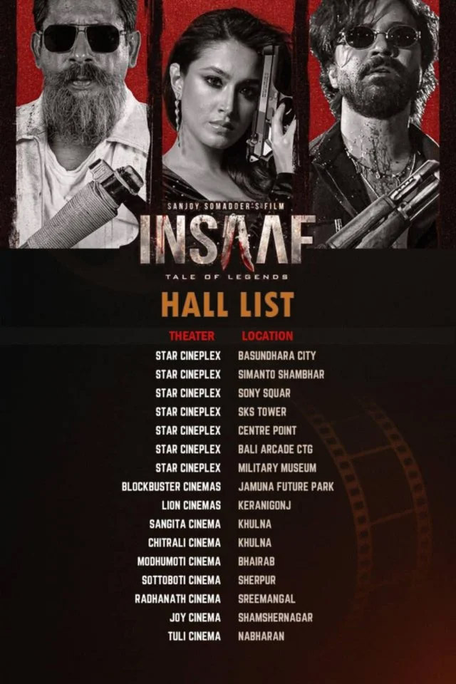 সঞ্জয় সমাদ্দার নির্মিত ‘ইনসাফ’ নিয়ে হাজির হয়েছেন মোশাররফ করিম, শরীফুল রাজ ও তাসনিয়া ফারিণ। অ্যাকশন ঘরানার সিনেমাটি সিনেমাপ্রেমীদের বেশ কৌতূহলী করে তুলেছিল মুক্তির আাগেই। শাকিব খানের‘তাণ্ডব’ সিনেমার পর সর্বোচ্চ প্রেক্ষাগৃহে মুক্তি পেয়েছে সিনেমা ‘ইনসাফ’। সিনেমাটির প্রযোজনায় রয়েছে তিতাস কথাচিত্র এবং টিওটি ফিল্মস।