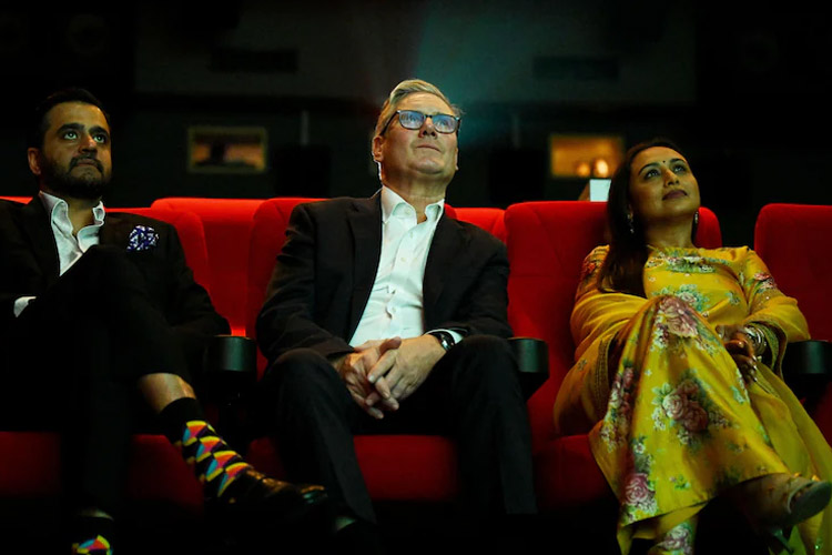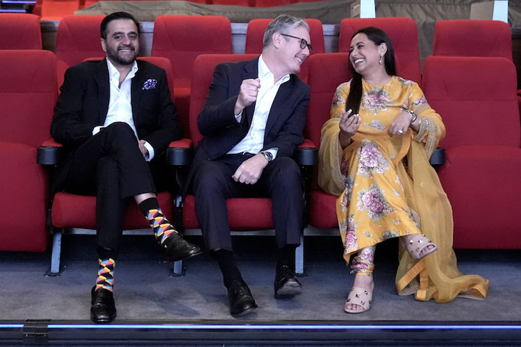যশরাজ ফিল্মসের সিইও অক্ষয়, যুক্তরাজ্যের প্রধানমন্ত্রী কিয়ার স্টারমার ও অভিনেত্রী রানী মুখার্জি (বাঁ থেকে)