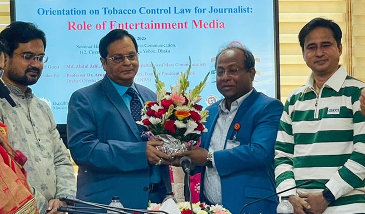 বুধবার (১৯ নভেম্বর) দুপুরে তথ্য ভবনে গণযোগাযোগ অধিদপ্তর, মাদকদ্রব্য ও নেশা নিরোধ সংস্থা (মানস) এবং বাংলাদেশ চলচ্চিত্র সাংবাদিক সমিতির (বাচসাস) যৌথ আয়োজনে ‘ওরিয়েন্টেশন অন টোব্যাকো কন্ট্রোল ল ফর জার্নালিস্ট: রোল অব এন্টারটেইনিং মিডিয়া’ শীর্ষক অনুষ্ঠানে উক্ত আহ্বান জানান তারা। নাটক, চলচ্চিত্রে তামাক নিয়ন্ত্রণ আইনের কার্যকর বাস্তবায়ন এবং ওটিটি নীতি দ্রুত চূড়ান্তকরণ ও একটি গাইডলাইন প্রণয়নের সুপারিশ তুলে ধরেন বক্তারা।