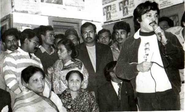 খালেদা জিয়ার পাশে দাঁড়িয়ে বক্তব্য রাখছেন নায়ক উজ্জ্বল