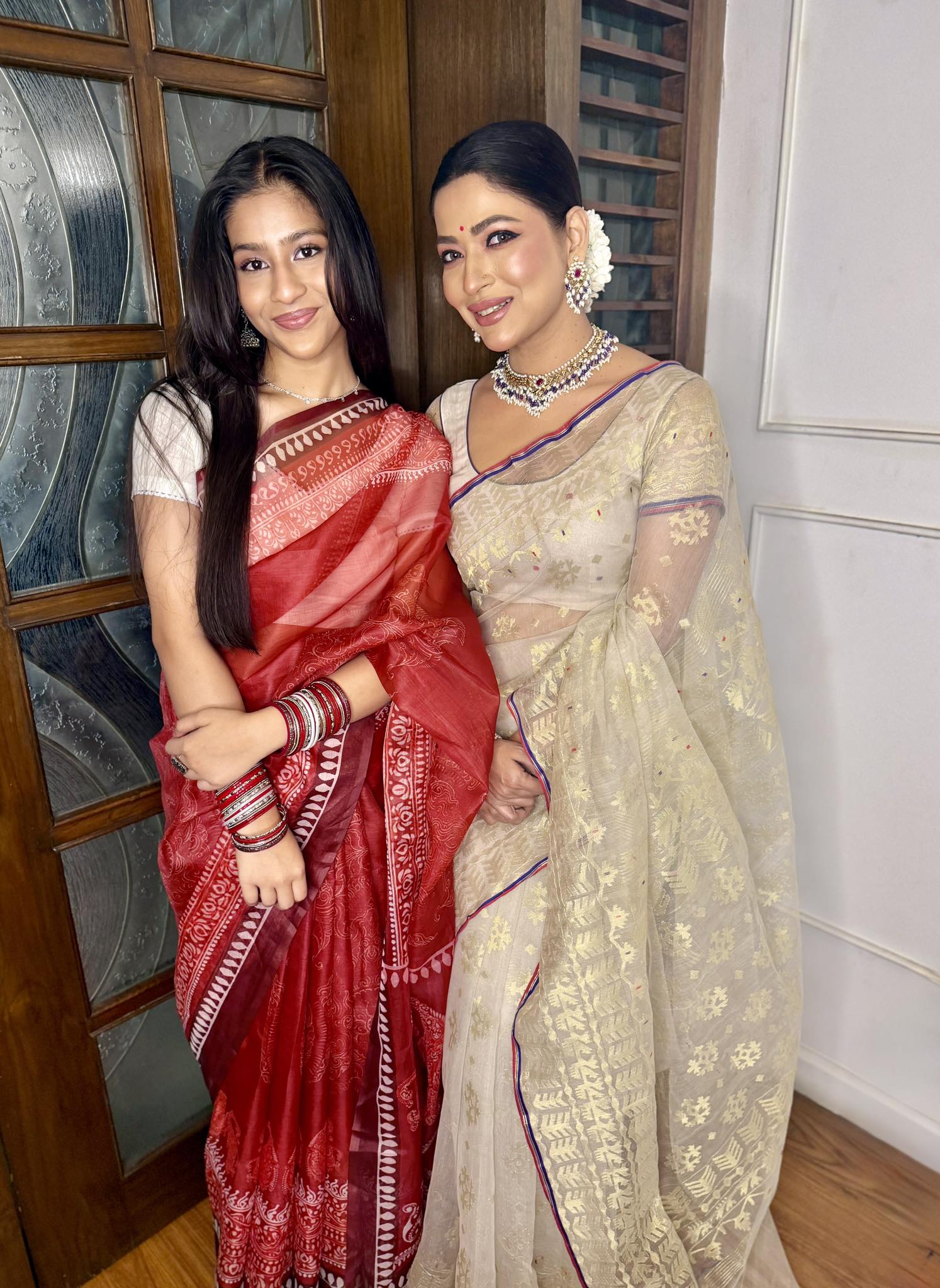 পয়লা বৈশাখ পরিবারের পাশাপাশি সহকর্মী, বন্ধুদের সঙ্গেও কাটিয়েছেন অভিনেত্রী আজমেরী হক বাঁধন। তবে তার সেরা বন্ধু তারই কন্যা। মা-মেয়ে দুজনেই আজ শাড়িতে সাজেন। সেই ছবি সোশ্যাল মিডিয়ায় শেয়ার করে এই অভিনেত্রী লেখেন, “শুভ নববর্ষ!”