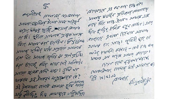 নেত্রকোনায় রবীন্দ্রজয়ন্তী পালনে শুভেচ্ছা জানিয়ে শৈলজারঞ্জনকে লেখা রবীন্দ্রনাথের চিঠি