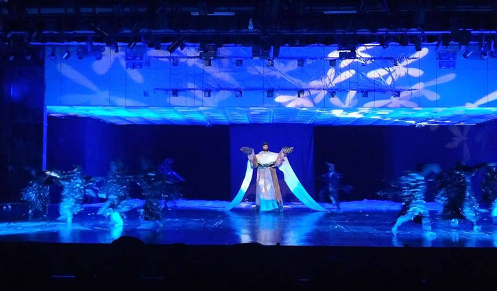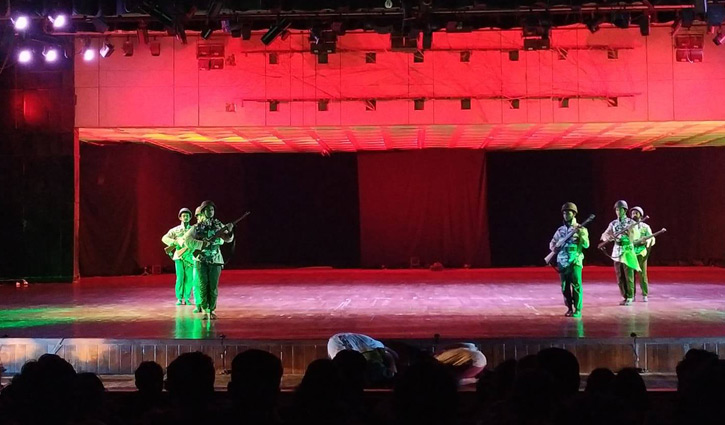 জামিল আহমেদ জানেন কীভাবে মঞ্চ ব্যবহার হয়। আদতে অভিনয় এলাকাকে তিনি বিবিধ স্থানে ভাগ করে নেন এবং পুরো প্রদর্শনকেন্দ্র আয়ত্বে নিয়ে আসেন স্পেসের যথার্থ ব্যবহারে। নাট্যগুরু পিটার ব্রুক বলতেন, ‘আমি যে কোনো একটা স্থান নিতে পারি এবং সেটিকেই শূন্য মঞ্চ বলতে পারি।’ জামিল আহমেদের প্রযোজনায় পিটার ব্রুকের ‘এম্পটি স্পেস’ তত্ত্বের প্রয়োগ একাধিকবার দেখা গেছে। এবারও আমরা শিল্পকলা একাডেমির মূল মঞ্চকে আরো বৃহদাকারে ও ভিন্নভাবে ব্যবহৃত হতে দেখলাম। মঞ্চের প্রতিটি কোণা এবং দর্শকের নিকটবর্তী অঞ্চলে একাধিক দৃশ্যরূপ উপস্থাপন করলেন শিল্পীরা। অভিনেতাদের বিভিন্ন কম্পোজিশন, প্রপস আর সেটের মাধ্যমে একের পর এক চিত্রময় দৃশ্য তুলে ধরেছেন তিনি। এ কথা ঠিক যে, জামিল আহমেদের অভিনয় শিল্পীরা প্রায়শই পাপেট। তিনি তাদের কেবল নাটকের বুনন সৃষ্টিতেই কাজে লাগান। এক ধরনের মিলিটারি ট্রেনিংয়ের মতো তারা একটা দল হয়ে কাজ করে। ব্যক্তিক অভিব্যক্তির বিকাশ নয়, সামগ্রিক প্রযোজনার নকশা নির্মাণেই কাজে লাগে তার অভিনয় শিল্পীরা। বলাবাহুল্য যে, অভিনয়ের ক্ষেত্রে স্তানিস্লাভস্কির মেথড তারা অনুসরণ করেন না। শিল্পীরা এখানে পুরো নাটকে একেকটি বাদ্য যন্ত্রের মতো। তারা নির্দেশকের বাঁধা সুরেই বাজেন। পুরো নাটকেই ১৪, ১৬, ১৮, ২০... জন অভিনেতাকে তিনি কোরাসের মতো ব্যবহার করেছেন। কখনো তার অভিনেতারা একটা মহল্লা, একটা নৃগোষ্ঠীর প্রতিনিধি, কখনো তারা মুক্তিযোদ্ধা, কখনো রাজাকার। তবে সামগ্রিকভাবে সরাসরি উপন্যাসের বর্ণনা উপস্থাপন করা হয়েছে কোরাসের ভঙ্গিতে। এই কোরাস অনেকটাই মনে করিয়ে দেয় জ্যঁ পল সার্ত্রের ‘মাছি’ নাটকের কোরাসের কথা। তারা নিজেরা ঘটনার সাক্ষী এবং নিজেরাই বিশ্লেষক এবং কখনো-বা নির্লিপ্ত বর্ণনাকারী।