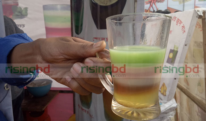 ওই কারিগর বলেন, ‘সাত রঙের এক কাপ চায়ের নিচের স্তরে থাকে ওরেঞ্জ স্বাদযুক্ত চা, এর উপরে থাকে ব্লাক কফি, সাদা চা, স্ট্রেুবেরী চা, দুধ চা, গ্রিন চা, ফ্রেশ দুধ এভাবেই সাত রঙে সাত স্তর বানিয়ে এই চা বানানো হয়।’