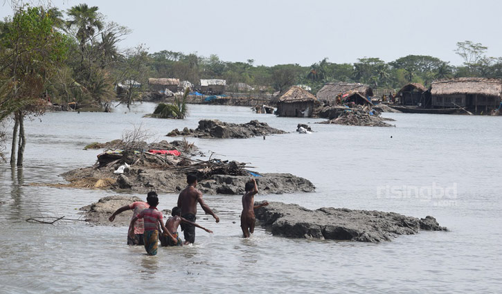 ঘূর্ণিঝড় আম্পানে ভাসিয়ে নিয়ে গেছে চলাচলের পথ। আশাশুনির কুড়িকাহুনিয়া গ্রামের ছবি