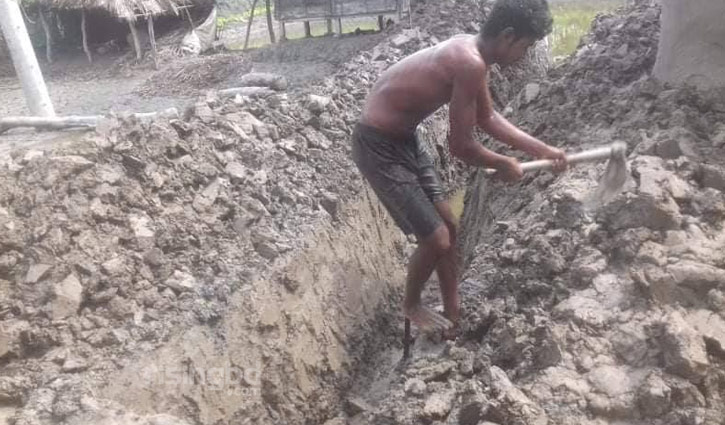 চিংড়ির ঘেরে লবণ পানি ঢোকাতে বেড়িবাঁধ কেটে পাইপ বসানো হচ্ছে