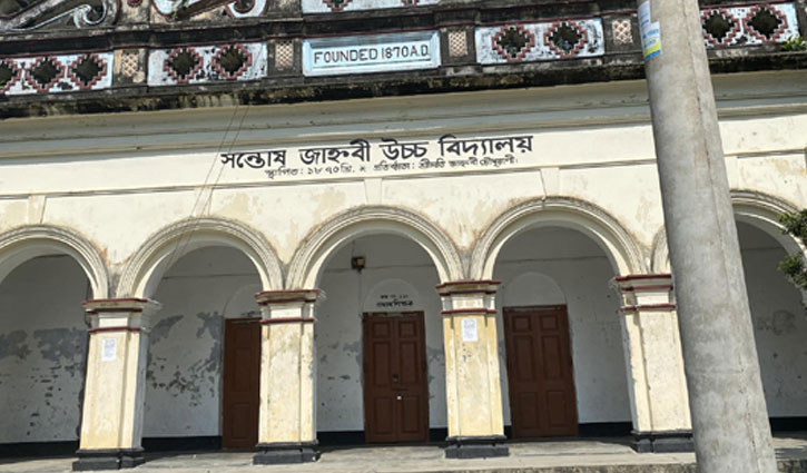 শ্রীমতি জাহ্নবী চৌধূরাণীর জমিদারিত্বের প্রতীক হয়ে প্রায় ২০০ বছর ধরে দাঁড়িয়ে রয়েছে সন্তোষ জাহ্নবী উচ্চ বিদ্যালয়। এটি ১৮৭০ সালে প্রতিষ্ঠিত হয়। ব্রিটিশ স্থাপত্য নৈপূণ্যে তৈরি এই স্কুলের নিজস্ব বৈশিষ্ট হচ্ছে- এর কোনো জানলা নেই, ৯৯টি দরজা রয়েছে। তবে বেশ কয়েকটি দরজা স্থায়ীভাবে বন্ধ করে দেওয়া হয়েছে। তবু আলোর অভাব হয় না। স্কুল ভবনের দৈর্ঘ্য প্রায় তিনশো ফুট। এর দেয়াল ২২ ইঞ্চি পুরু। ছাদের উচ্চতা ২২ ফুট ।